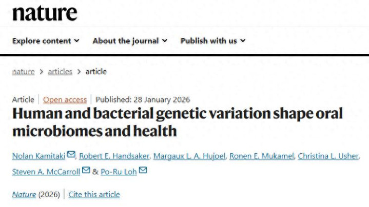 1月28日,《Nature》的研究报道“Human and bacterial genetic variation shape oral microbiomes and health”,通过宏大的数据规模和巧妙的分析视角,重新定义了我们对“口-身”关系的认知。研究人员利用全基因组测序(Whole-Genome Sequencing, WGS)数据,深入剖析了人类遗传变异如何微调口腔生态系统,并进一步揭示了这些相互作用如何导致特定的口腔疾病。