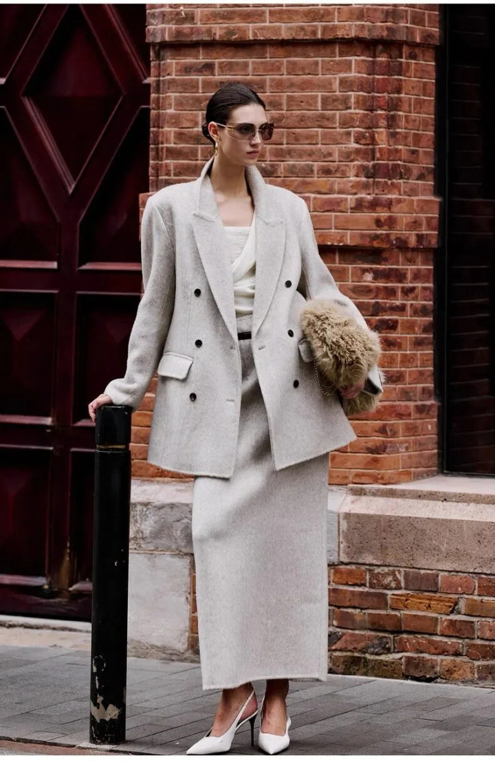 ★ 首选羊毛、羊绒或粗花呢材质,有重量感也挺括