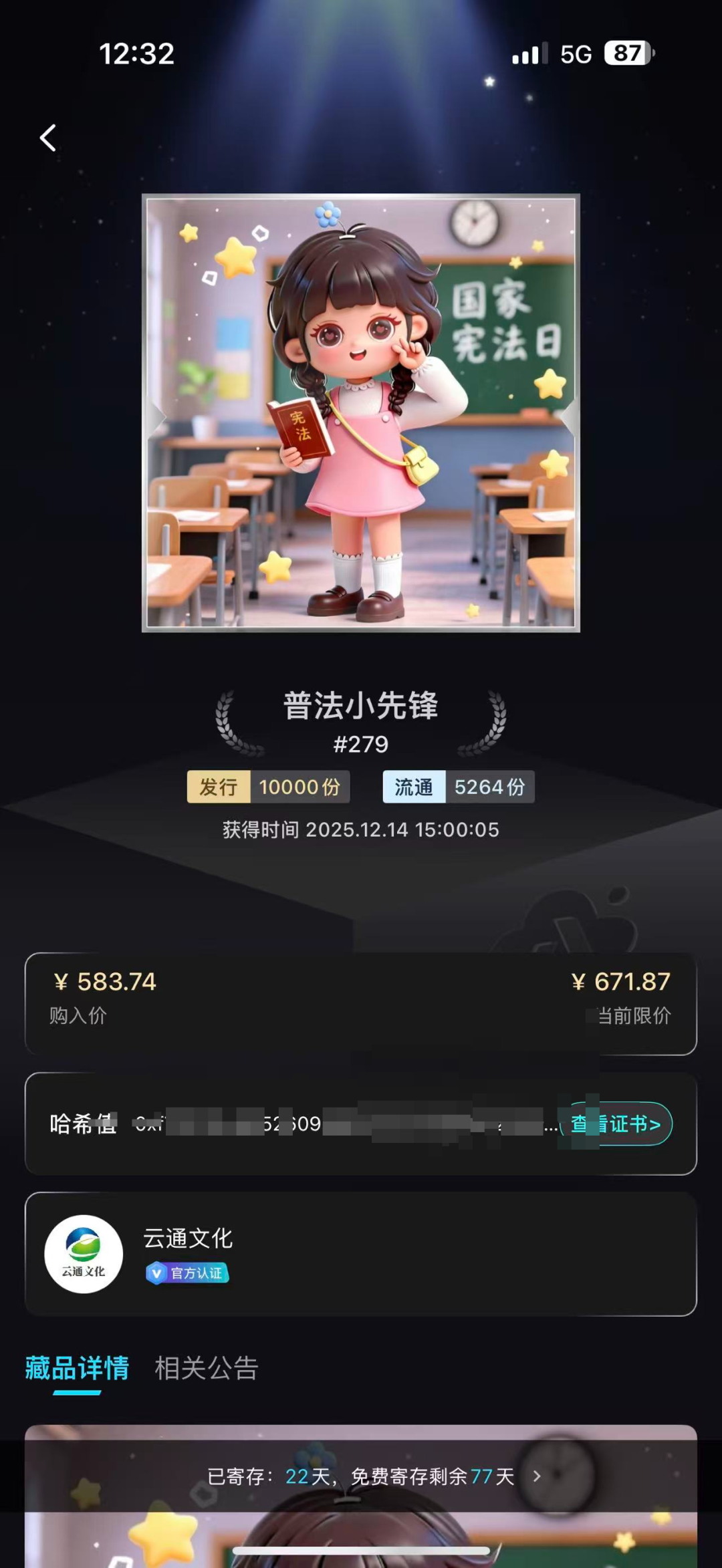 一运转,小唐过问几千元小试本事,每天下昼3点,定好闹钟在APP上准时抢购“数字藏品”(因藏品王人是一张张电脑制作生成的图片,因此用户民风称之为“图片”)。一般3点发售的“图片”,2分钟就会售罄。抢到后,把“图片”放在平台里“寄存”就不错每天按涨幅增值,到达寄存天数后,挂到平台出售即可收成。