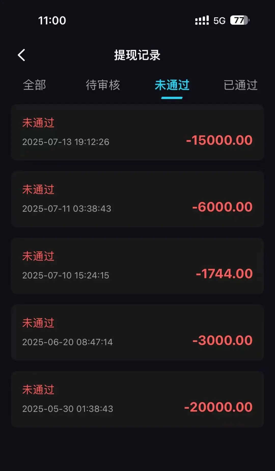 小杨屡次肯求提现未通过 受访者提供
