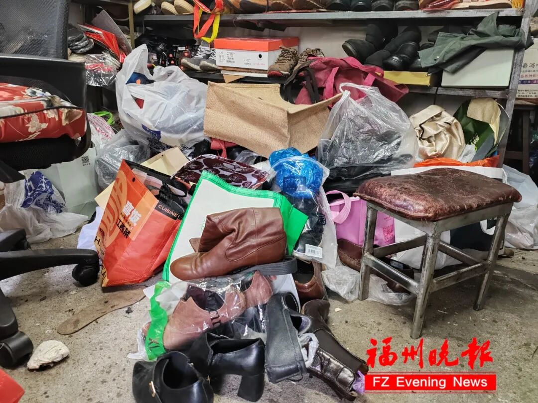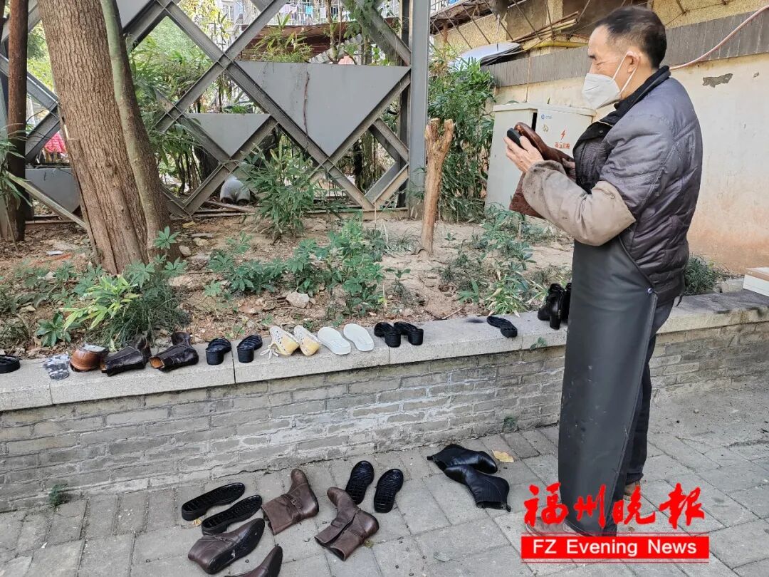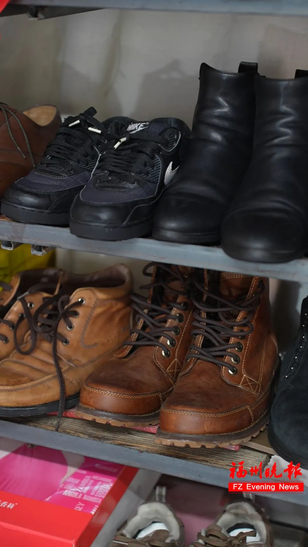 地上这些都是昨天客户刚送来的还没修的鞋子