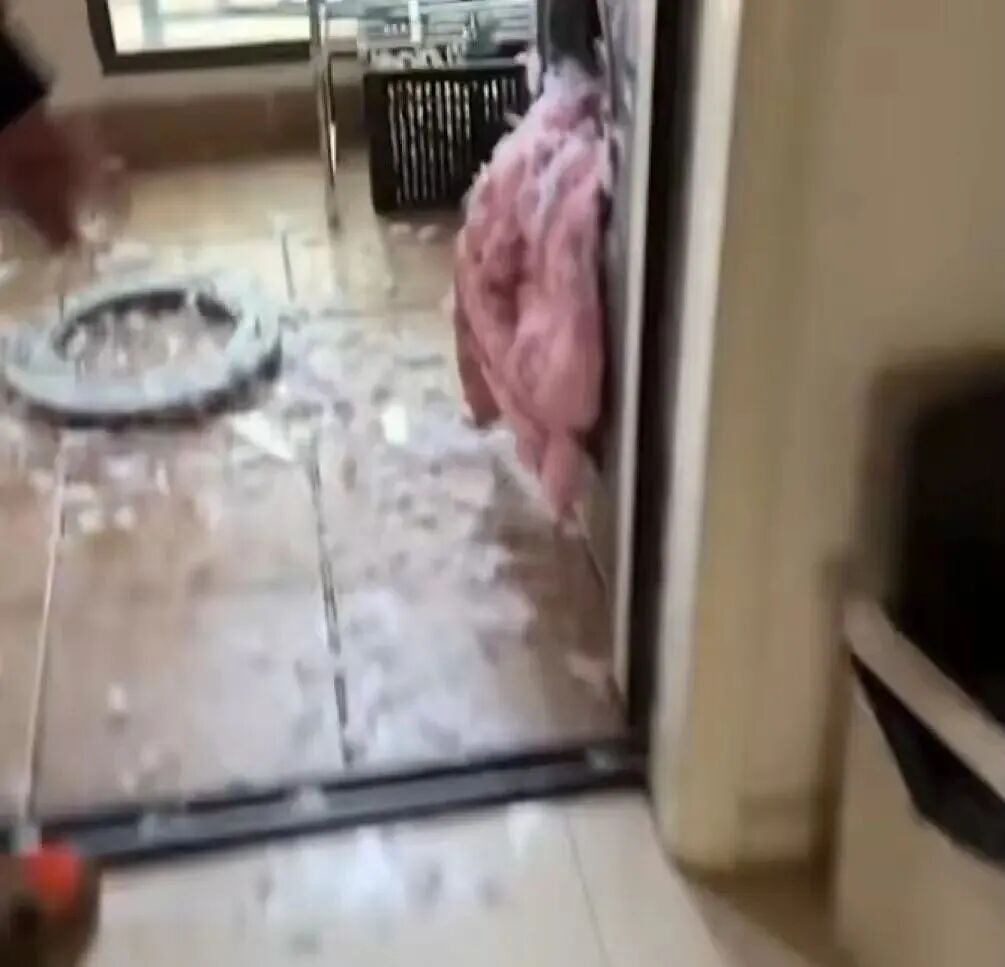 洗衣机的门被炸开。图源:国度济急播送视频截图