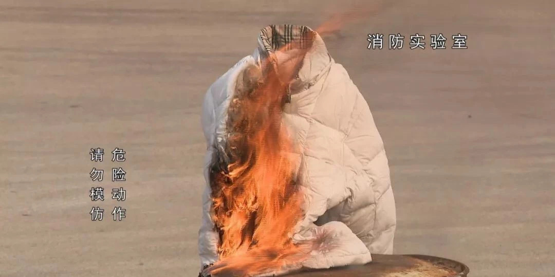 有本质标明,将羽绒服穿在假东说念主模特上并拉上拉链,用打火机在衣角小数,羽绒服立马窜出火苗,不到5分钟就被烧得只剩融化的拉链。若是此时战争到含有油脂的皮肤,其撤废速率可能会更快。