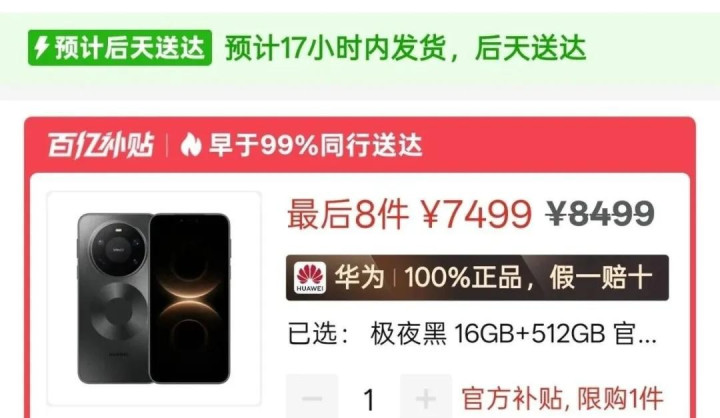 刚刷到这音信我手一抖,差点把咖啡洒在键盘上——第三方平台偷偷把华为Mate80ProMax风驰版(16G+512G玄色)调到了7499元。官方标价但是8499元,径直少掉一张红票子。这波降价来得毫无预兆,没卡618节律,也没发预报海报,反倒像渠说念偷偷松了语气:库存压着呢,得动一动。