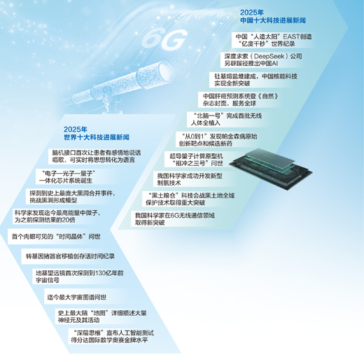 2025年中国十大科技推崇新闻别离是:中国“东谈主造太阳”EAST创造“亿度千秒”世界记载;深度求索(DeepSeek)公司独辟途径推出中国AI;钍基熔盐堆建成,中国核能科技完满全新冲破;中国肝癌展望系统登《当然》杂志封面,作事寰球;“北脑一号”完成首批无线东谈主体全植入;“从0到1”发现帕金森病原创举新靶点和候选新药;超导量子计较原型机“祖冲之三号”问世;我国科学家凯旋开发新式制氢技艺;“黑土粮仓”科技会战黑地皮全域保护技艺赢得紧要冲破;我国科学家在6G无线通讯限制赢得新冲破。