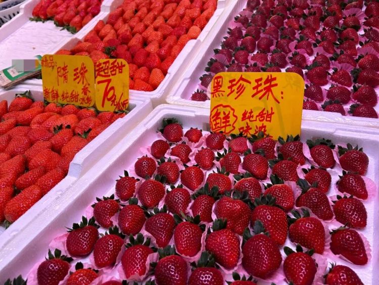 大不雅篆新农贸阛阓在售的黑草莓。张梅焕 摄