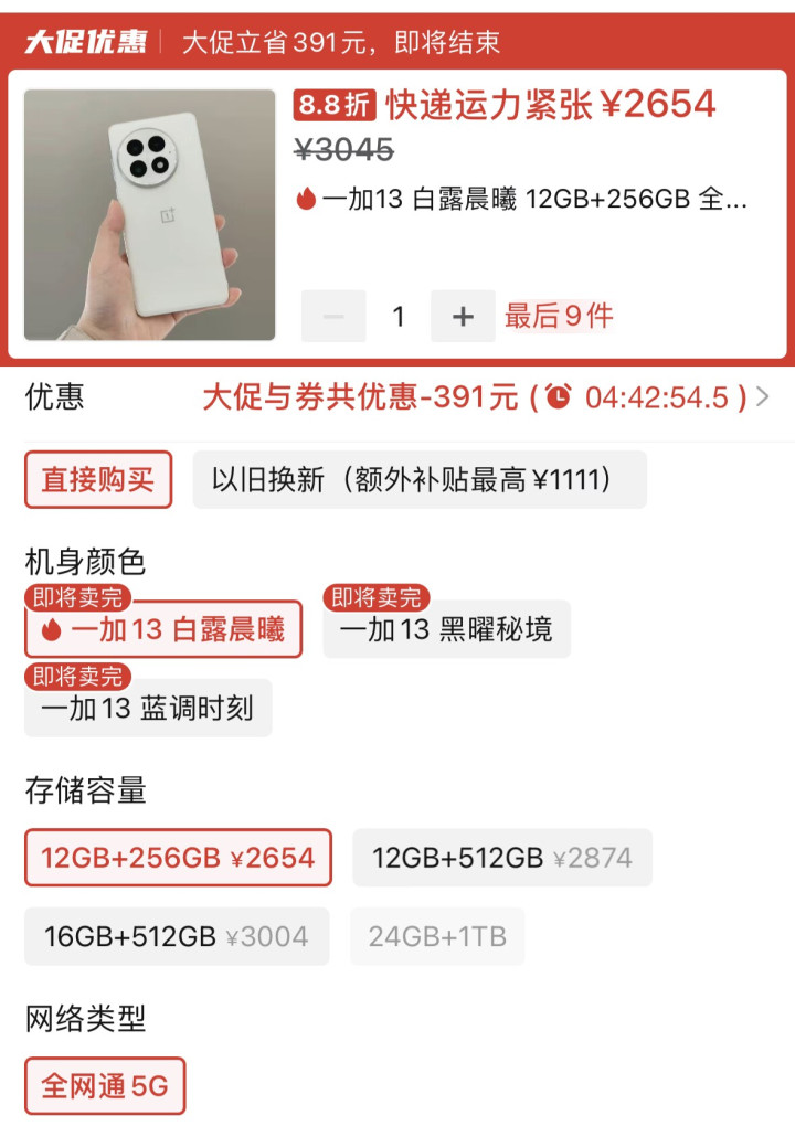 总的来说,就一加13这款旗舰,并不是靠某一个“爆点”去打动人,而是通过性能、屏幕、影像、续航以及一系列细节体验的全面均衡,让你在日常使用中不断感受到“它真的很好用”!如果你正在寻找一台可以陪你用很久、在各种场景下都不拖后腿的旗舰手机,就一加这款旗舰绝对是很值得入手的,而就在价格层面也是很亲民的存在了,参考到如今电商平台中的售价情况,则是仅需要2654元的价格即可入手了。