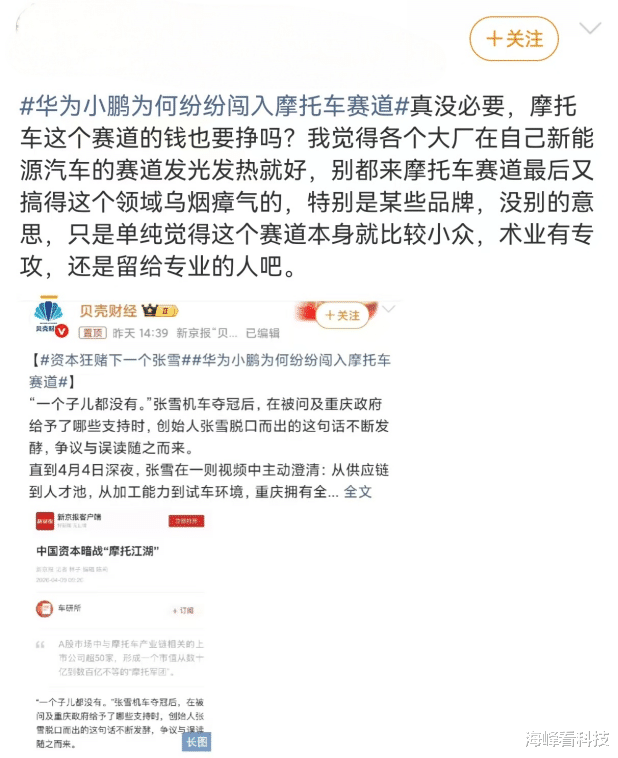 近日,华为小鹏为何纷纷闯入摩托车赛谈登上微博热搜。笔者看到,这条微博热词位列微博热搜第42位,科技热搜的第6位。