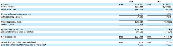 2024-2025财年(截至6月30日),JoyByte营收分别为113万美元、294万美元,相应的净利润分别为-19万美元、108万美元。