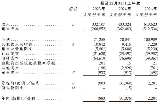 招股书表现,在当年的2023年、2024年和2025年,欢创科技的营业收入诀别为东谈主民币3.32亿、4.33亿和6.14亿元,相应的净利润诀别为东谈主民币-88.3万、-3,137.5万和220.1万元。
