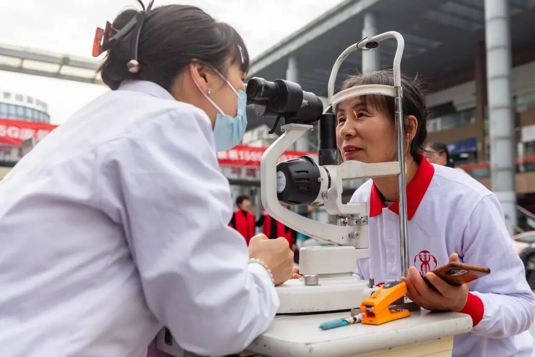 2025年12月19日,湖州市长兴县龙山街说念都北社区连合都北居家养老服务中心,举办友邻节活动。图为老东说念主在进行眼科义诊。图源:潮新闻客户端