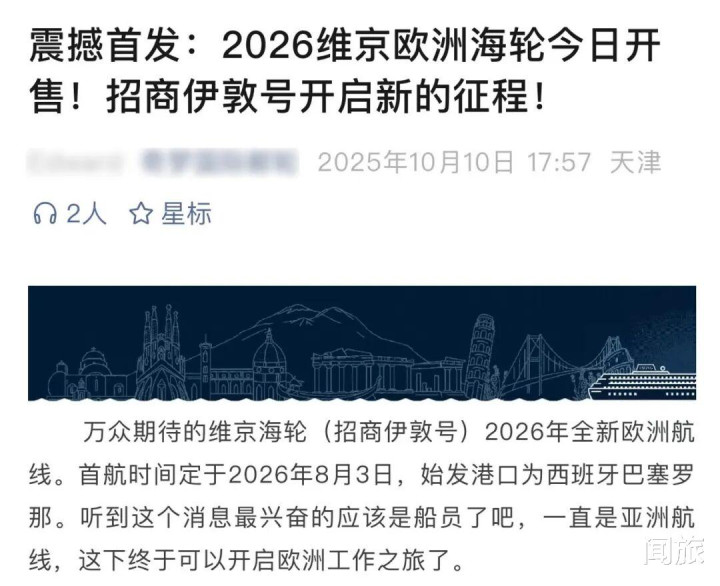 这样尖刻的条款,像是在劝退普通买家。再蚁合业内早已传开的,“招商伊敦号”2026年要跑欧洲地中海航路,8月份首航的音问。这次挂牌,似乎更像是走过场的经由,当初是从维京游轮手里买的这条船,大约率又要被维京我方给买且归。