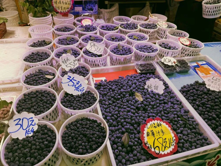 在云南昆明大不雅篆新农贸商场,来自澄江、蒙自等产地的蓝莓整皆摆放,近日价钱集合在每公斤30元至60元区间,不少市民旅客在蓝莓摊位前选购;沉除外的上海,倏地者通过手机下单,次日就能收到云南直发的崭新蓝莓,单盒125克的蓝莓价钱降至十元出面。