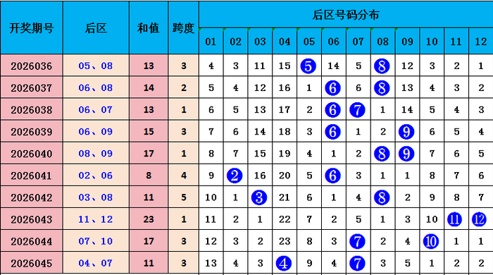 后区第二位:前10期开出奖号:其中奇数号码开出4次,偶数号码开出6次,奇偶走势偶数胜出,本期谨防奇数号码出现。参考号码:09。