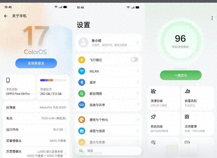 2026年春季 ColorOS 17系统以其前瞻性的想象理念和普遍的功能生态激刊行业关注 本文基于实在用户界面截图 从系统架构 硬件协同 交互翻新三个维度 全面明白这一面向明天的操作系统,ColorOS 17接受全新微内核架构 通过分层式任务调度机制已毕资源动态分派 在对于手机页面中 系统版块号17以醒探究蓝色数字呈现 配合渐变橙底色想象 既杰出品牌识别度又传递技巧自信 硬件建树数据暴露 该机搭载联发科天玑9500处理器 16GB启动内存与7500mAh超大容量电板的组合 构建起性能与续航的双重保险 值得谨防的是 存储决策提供256GB与512GB双版块聘用 心仪不同用户对数据容量的需求,影像系统动作OPPO的技巧护城河 LUMO徕卡合资研发的后置双5000万像素镜头模组 配合5000万像素前置传感器 酿周至焦段躲避智商 这种硬件堆料计谋在系统页面中得到直不雅体现 参数标注接受模块化排版 要害信息如传感器类型 像素规格均以加粗字体杰出 便于用户快速赢得核心数据