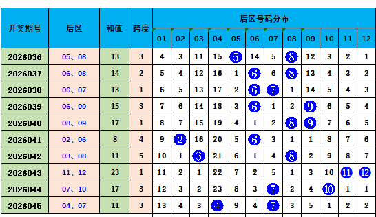 一区(01-12):上期开出1个奖号。最近10期该区开出16个号码,总体阐扬较冷。本期该区关爱2个号码01,12